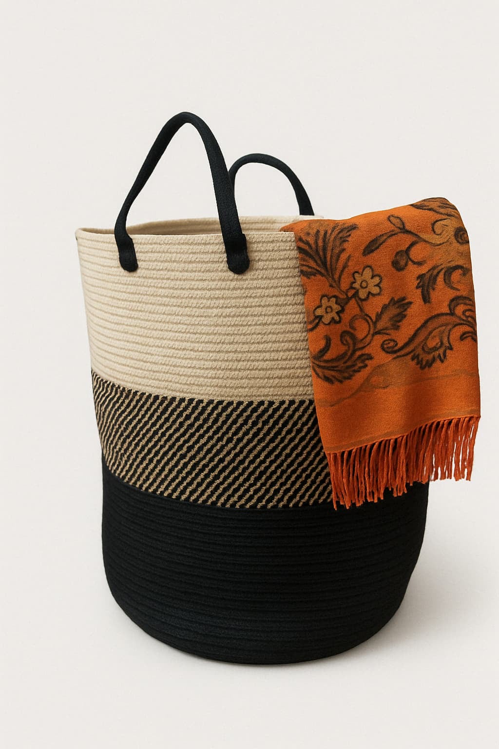 Sturdy black handles make it easy to carry around 💪, while the soft woven texture adds a warm, handcrafted touch. Perfect for stashing blankets, toys, laundry, or even plants 🧸🧺🪴—it’s as practical as it is stylish.