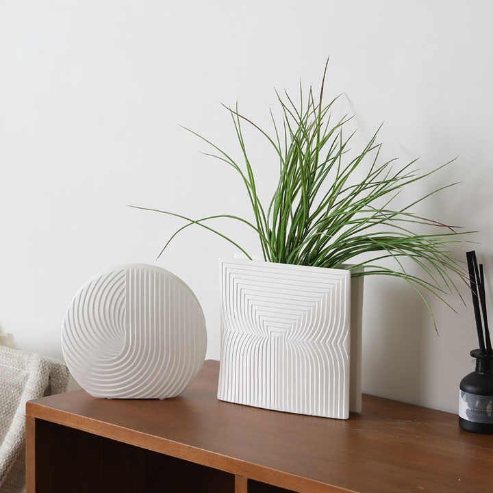 Embrace serene simplicity with the Skadi Ceramic Vase, inspired by the Nordic goddess of winter and mountain calm ❄️. Crafted in a smooth white ceramic finish with subtle patterned texture 🌀, this minimalist piece brings cool, modern elegance to your decor.